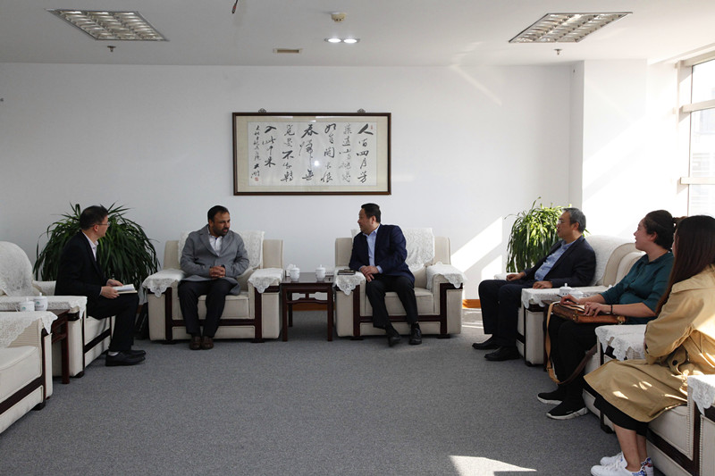 交流会上,曹毓民校长介绍了学校的历史,中外合作办学项目的开展和国际学院的成立及办学情况,并就中巴经济走廊文化交流中心成立后双方的进一步合作展望了愿景。张健副校长介绍了国际学生的人才培养模式和国际学院的日常教学、管理情况。Mehdi Ul Hassan先生介绍了巴基斯坦的教育体系和吉尔吉特地区高等教育的发展状况,他表示自己在新闻媒体上知悉了学校国际学院成立的消息,对我校在“一带一路”背景下开展的国际化人才的培养工作表示高度的认同。接下来的会谈中,双方就深化在教育层面的合作,如开展中巴留学生互访、互派的交流学习,实施师资培养计划,共建教育培训机构等方面进行了进一步的沟通和探讨。