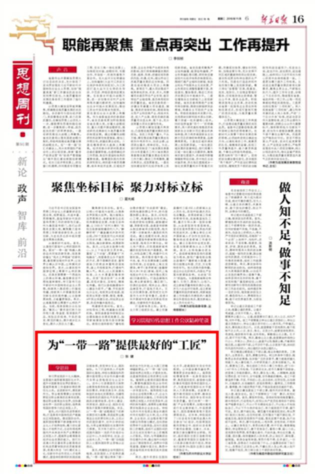 11月6日,《新华日报》16版思想周刊·政声栏目刊登了我校副校长张健题为《为“一带一路”提供最好的“工匠”》的理论文章。文章理论联系实际,系统地介绍了我校在全球视野下,助力“一带一路”沿线国家培养应用型人才的经验做法。现将全文转载如下: