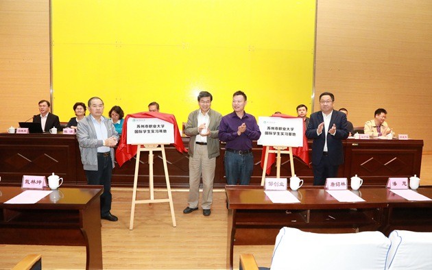 At the ceremony, Niu Xuelin, Cao Yumin, Dai Linkun and Zou Chuangye jointly unveiled the "Suzhou vocational university international student internship base". This year, under the care of the ministry of education, the university cooperated with the ministry of higher education and training of South Africa and the China center of South Africa to receive 40 South African college students for a one-year practical training program. After completing the 6-month study in the school, these students will go to enterprises for the 6-month internship.