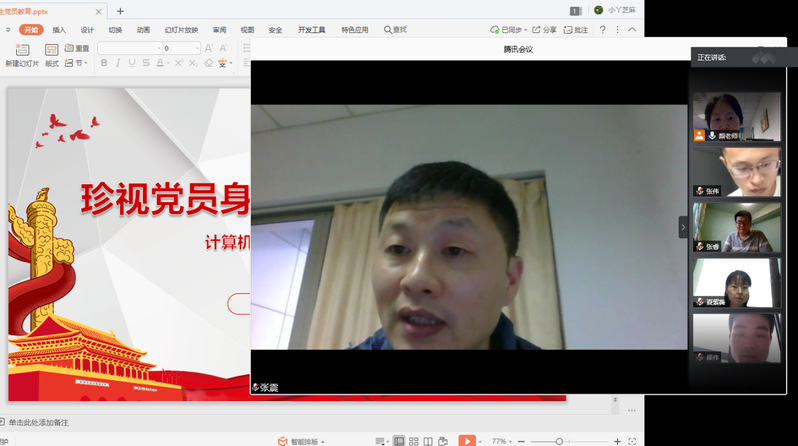 6月毕业季仍处在疫情防控期间,为认真落实《中国共产党党员教育管理工作条例》以及市委组织部具体工作部署,加强对毕业生党员的教育和管理,计算机工程学院学生党支部以云会议的形式,于6月9日举行了“珍视党员身份,增强党性意识”毕业生党员专题教育大会。院党总支书记张震为毕业生党员讲授专题党课,支部书记颜娟主持会议,21名毕业生党员全体参会。